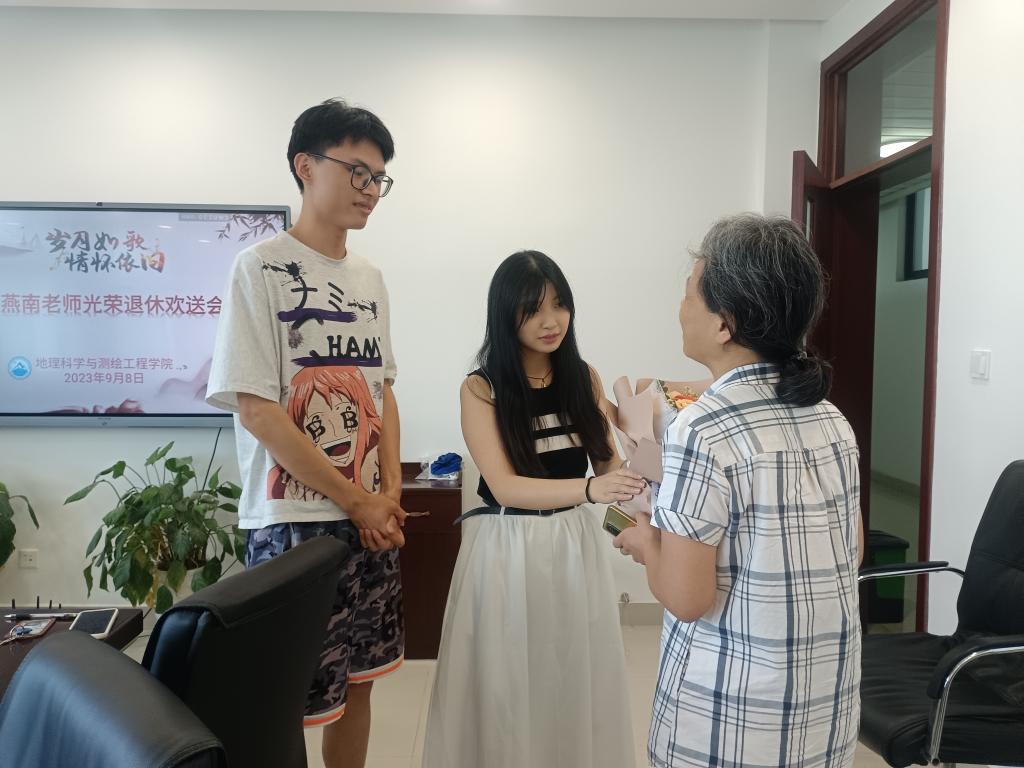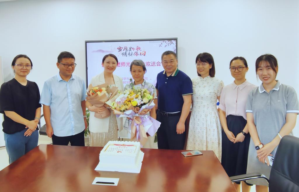 院党委为退休教师伍燕南举行了荣休仪式,书记张菡、院长杜景龙对伍老师的师德风范、深耕教学32年的工作业绩给予了高度评价,希望伍老师继续发挥老教师的“传、帮、带”作用,为学院发展建言献策,祝福她开启人生的新篇章,拥有愉悦的心态,健康的体魄,常回“家”看看。系里教师代表细数与伍老师工作的点点滴滴,表达了不舍之情及向老教师学习潜心教育事业的决心。张菡为伍老师赠送了纪念品,杜景龙为伍老师颁发了聘任其为教学督导教师的聘书。学生及青年教师代表用鲜花表达了对伍老师诚挚的敬意和祝福。
