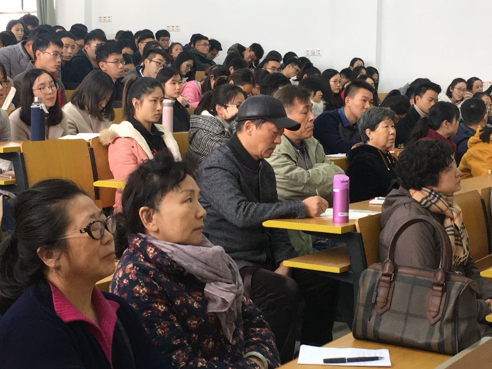 主讲人王杰生老师阐释了本次讲座举办的目的是为了帮助同学们学习党的十九大精神,不忘初心、牢记使命,高举中国特色社会主义伟大旗帜,为中国特色社会主义伟大胜利做出努力,为实现中华民族伟大复兴的中国梦不懈奋斗。主讲人阐释了党的十九大的定义,详细解释了共产党的党章规定,并依次列举出各届代表大会做出的重要决策。他讲述了十九大会议党员们清正廉洁、为民服务的不苟工作作风,并着重举出了大陆内外多个党员的先进事例和奋斗历程,以及基层干部为民众脱贫做出的不懈努力。随后,主讲人强调了中国的发展对世界贡献巨大,指出中国经济和科学发展的程度都取决于党的十九大提出的“五大发展理念”、“科学发展观”,他结合了中外国家的发展历程,对照党的十九大报告解释了“定位新时代”的意义。主讲人还就高校思想政治理论课的建设和创新、高水平马克思主义学院建设等问题进行深入分析。王老师阐释学校要全面加强和改进高校思想政治工作,以立德树人为中心,构建大思政格局,将高校思想政治工作贯穿教育教学全过程。高校思想政治工作要要整体推进思政课建设,基于创新总要求,大力推动教学改革,促进传统课堂教学与网络教学、传统课堂教学跟实践教学的深层次结合,提高思政课的吸引力和教学质量。最后,主讲人以习近平主席的“做新时代青年先锋”报告结尾,让同学们志存高远,为中国梦的建设谱写新的华章。同学们认真聆听讲座,并从中对党的十九大的精神有了更加深刻明晰的认识。讲座于下午四时许圆满落幕。