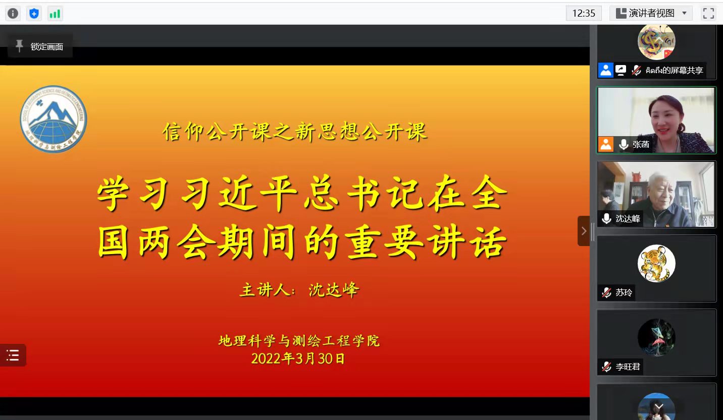 张菡表示,根据2022年地测学院教职工政治理论学习安排的通知要求,全体师生将在今后的工作中深刻领会和把握两会会议的精神实质,深入学习领会习近平总书记关于“五个必由之路”、“五个有利条件”的重要论述,自觉做“两个确立”的坚定拥护者和“两个维护”的坚决践行者。她强调,将学习与巩固拓展党史学习教育相结合,与落实立德树人根本任务相结合,与实施“十四五”规划和推进学校事业发展相结合,推动统筹疫情防控和学院学校高质量发展各项工作落地见效,以实际行动和优异成绩迎接党的二十大胜利召开。