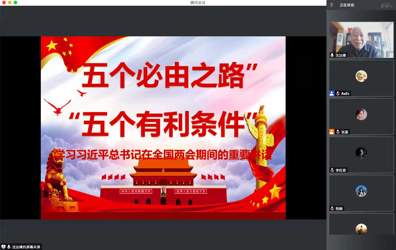 为学习贯彻全国两会精神,3月30日,伟德victor1946邀请校关工委常务副主任沈达峰老师作题为《“五个必由之路”“五个有利条件”--学习习近平总书记在全国两会期间的重要讲话》的报告。全体师生党员、民主党派教师和入党积极分子参加了会议,会议由学院党委书记张菡主持。