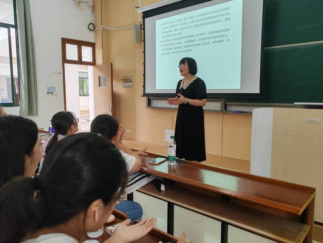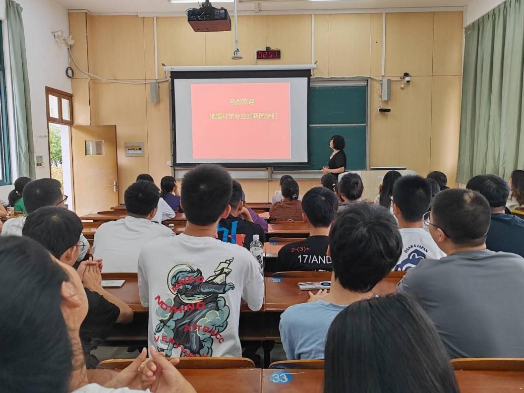讲座的开始,张晓芳老师回顾了该专业在本校的发展历程,带领各位新生了解了本校地理科学专业的历史与专业的实力,指出本专业特色主要体现在科学研究、学科教育和师范技能等三个方面,并为各位新生讲解了专业前景与人才培养的亮点与方向。