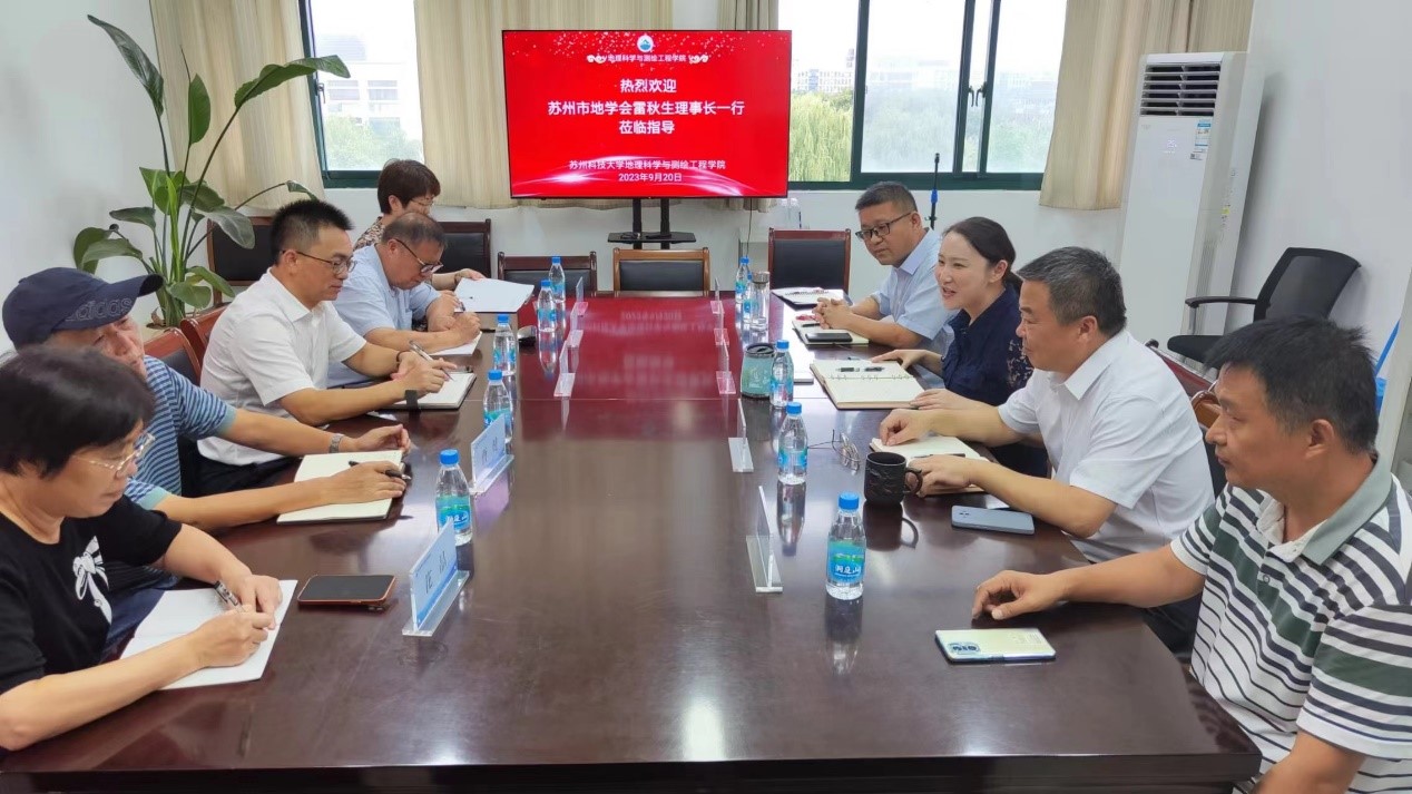 2023年9月20日下午,苏州市地学会理事长雷秋生、名誉理事长李克偕、监事长曹健、副理事长嵇瑾和秘书长花晶等应邀来地测学院交流访问。地测学院党委书记张菡主持活动,院长杜景龙、副院长陈德超等参加交流。