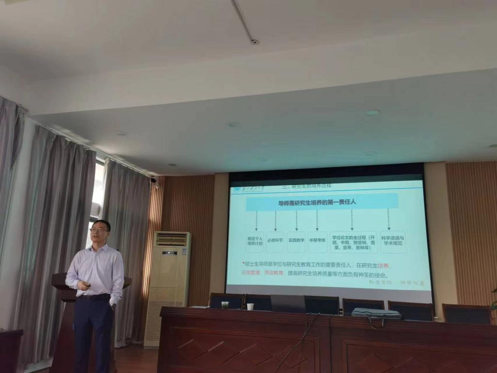 为全面提升资源与环境(测绘工程)专业硕士生导师的指导能力,强化导师是第一责任人意识,保障本领域硕士生培养质量,10月26日下午,学院组织硕士生导师进行了专题学习。会议邀请到学校优秀硕士生导师、校学科办主任、研究生院院长孙国华教授做现场辅导报告,副院长陈德超主持培训会。