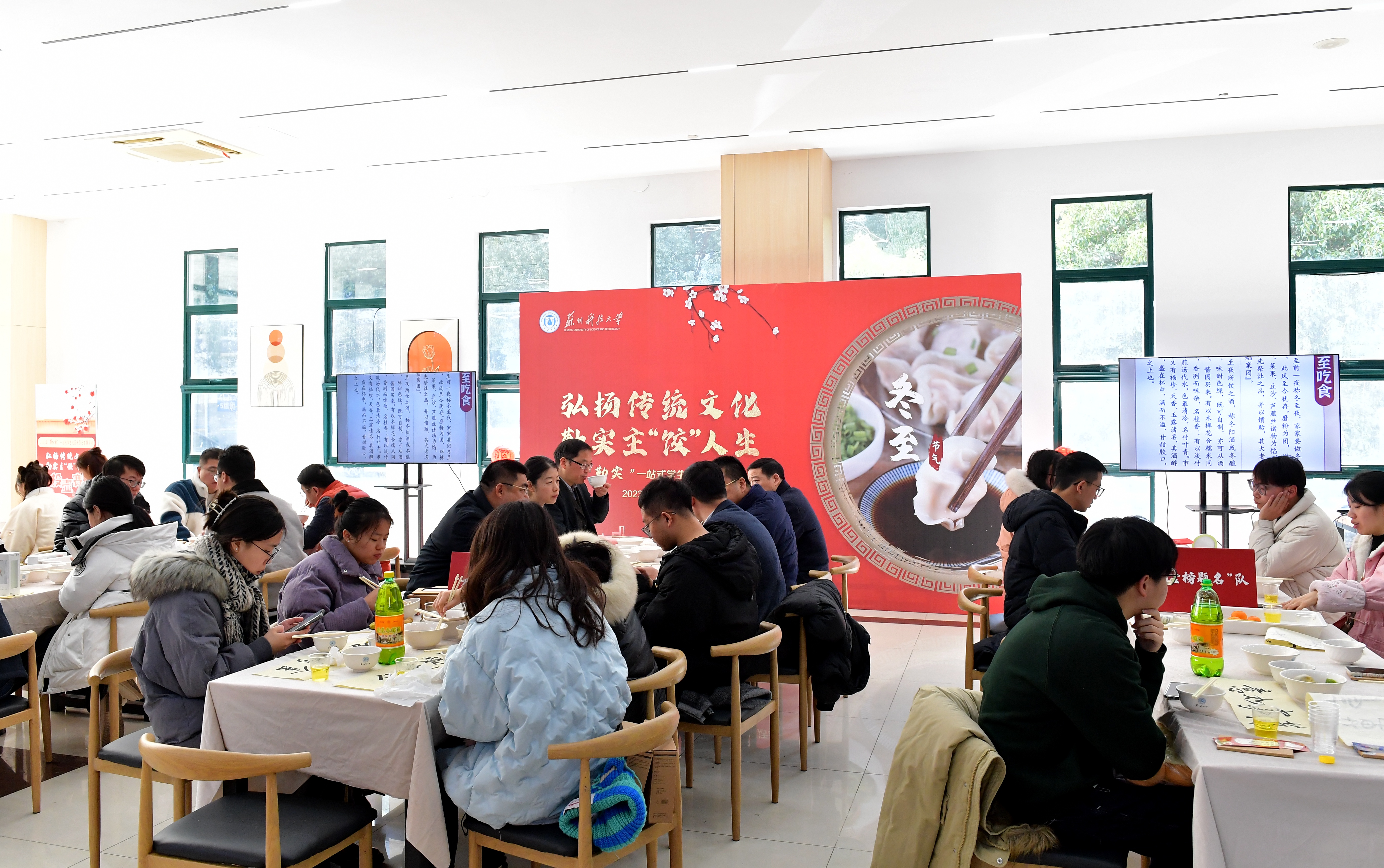 冬至阳生,万物生长。12月22日,bevictor伟德国际19462023年“勤实”一站式学生社区成功举办了主题为“弘扬传统文化,勤实主‘饺’人生”的冬至日主题活动。本次活动由学生工作处主办,伟德victor1946、后勤服务总公司承办。校党委常委、副校长崔雪丽、唐柏鉴、孙士俊,组织部、宣传部、学生工作处、“勤实”一站式学生社区联建学院环境科学与工程学院、电子与信息工程学院、商学院、外国语学院、伟德victor1946等师生代表参加了此次活动。