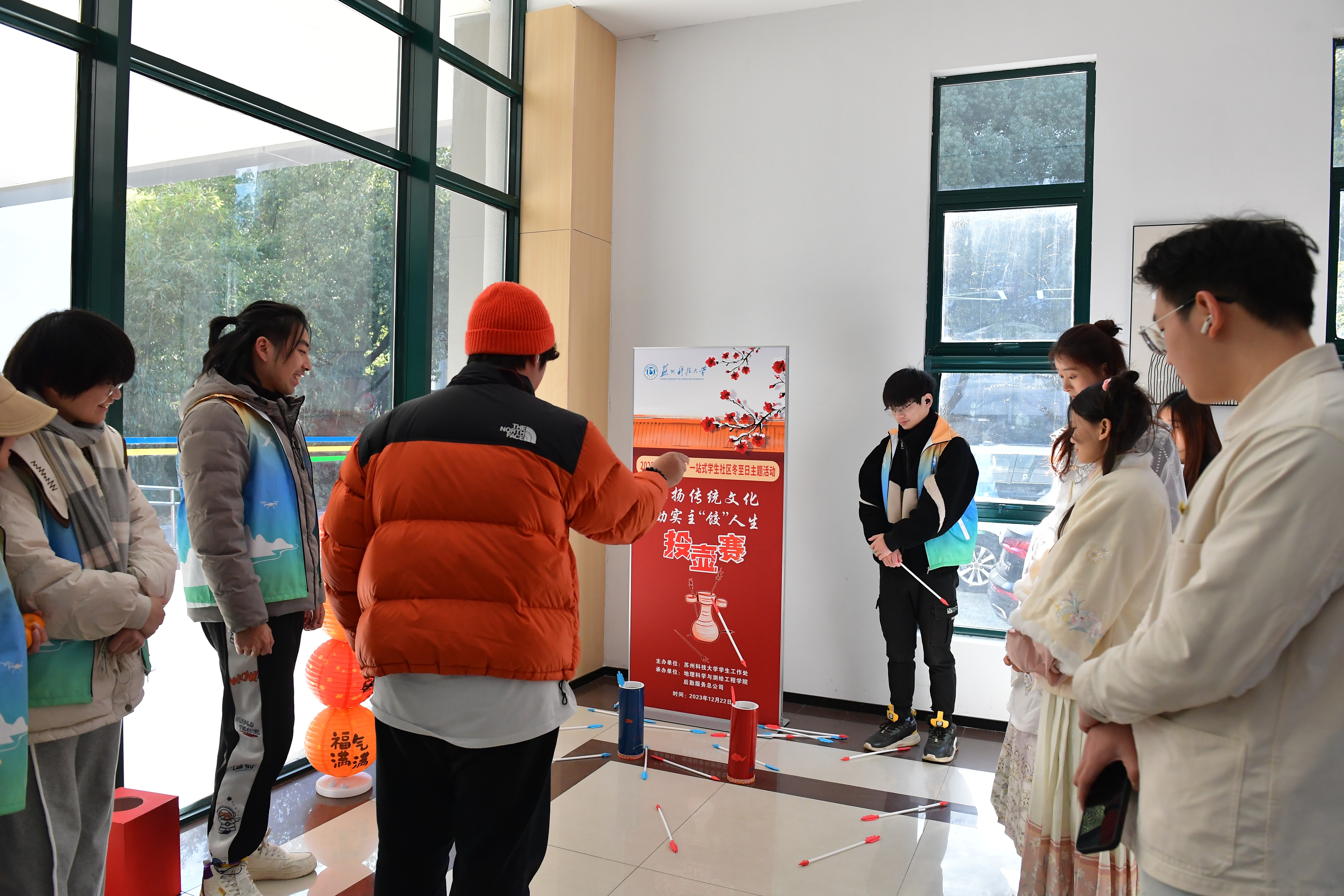 在暖场活动中,师生们积极参与了多项传统文化体验活动,包括猜灯谜、投壶比赛、书法交流、品冬酿酒以及冬至主题知识竞答等,深入了解冬至的传统文化和习俗,深刻感受中华优秀传统文化的独特魅力。在“幸福主‘饺’”包饺子比赛环节,食堂大师傅详细演示了包饺子的技巧,包括如何擀皮、褶边、捻合封口等关键步骤。师生们认真观摩,并在大师傅的指导下亲自动手包饺子。学校领导与师生们一起品尝了自己亲手包的饺子,话家乡、聊生活、谈未来,进一步拉近了彼此的距离,师生们感受到了满满的幸福。