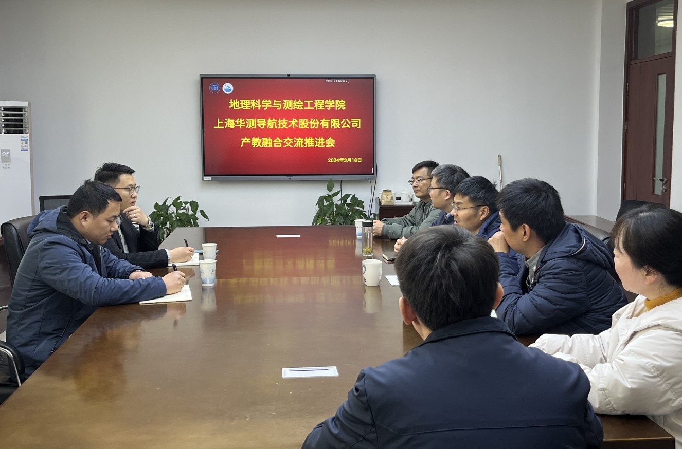 为了切实践行立德树人根本任务,深入推进产教融合工作,3月18日,地测学院邀请行业领军企业上海华测导航技术股份有限公司高校行业经理李金鑫和苏南区域经理蔡鹏来我院进行产教融合工作交流。地测学院副院长杨朝辉、副书记彭科和骨干教师参加了此次交流讨论。