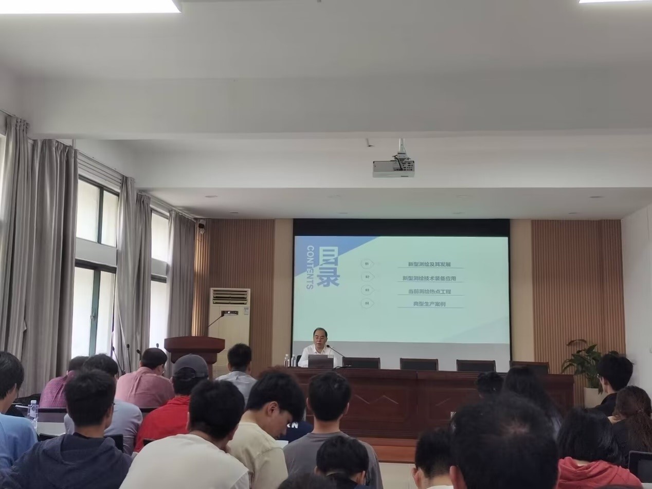 刘全海书记首先以“新型测绘技术在城市勘测中的应用与思考”为题向测绘工程专业大三学生做了专题报告。报告结合常州市测绘院近年来在测绘技术和项目经验上的积累,对目前城市测量中新技术、新装备的应用情况以及未来几年测绘行业发展趋势进行了介绍,总结了当前六大类热点测绘项目,并探讨了人工智能技术发展为测绘行业带来的机遇和冲击。