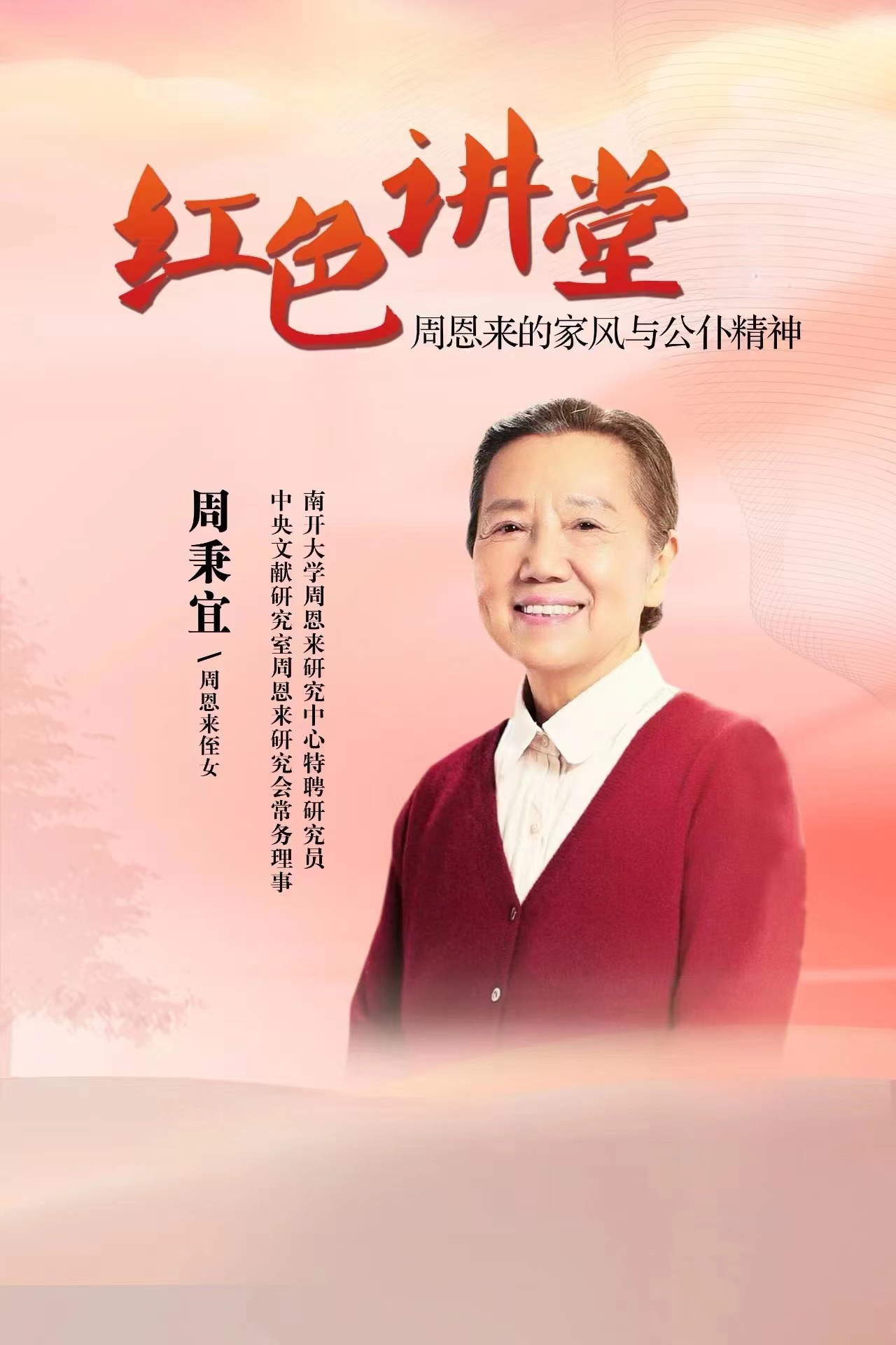 5月24日,伟德victor1946与杰出校友尹朝晖共联共建,组织参加“红色讲堂”党纪学习教育专题报告会。本次报告会邀请到中央文献研究室周恩来研究会常务理事、南开大学周恩来研究中心特聘研究员周秉宜女士主讲,题目为《周恩来的家风与公仆精神》。报告通过弘扬廉洁齐家的榜样力量,有力促进党风廉洁文化建设;以公仆精神深化正确政绩观的理解与践行,促进党纪学习教育落地生根、见行见效,构筑起拒腐防变的牢固防线。