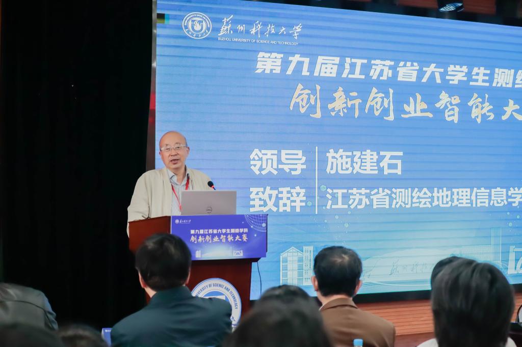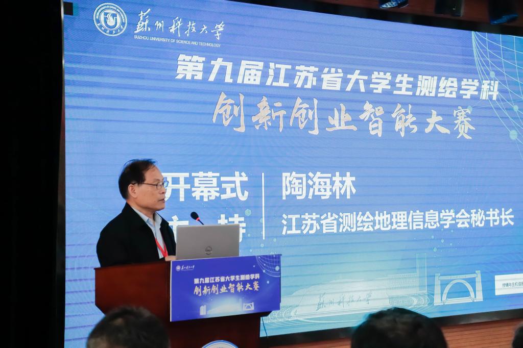 比赛开幕式在我校外语学院五楼报告厅举行。全国教学名师、中国矿业大学教授高井祥,工程教育认证专家、解放军战略支援部队信息工程大学教授翟翊,全国大学生测绘学科创新创业智能大赛裁判长、武汉大学产学研合作处处长、科技成果转化服务中心主任邹进贵,江苏省测绘地理信息学会理事长施建石,江苏省测绘地理信息学会副理事长谢建平,江苏省测绘地理信息学会秘书长陶海林,江苏省测绘地理信息学会教育工作委员会主任委员李明峰,bevictor伟德国际1946党委常委、副校长崔雪丽、教务处和伟德victor1946班子领导及师生,省内各高校的50余名评委、40名企业代出席了开幕式。