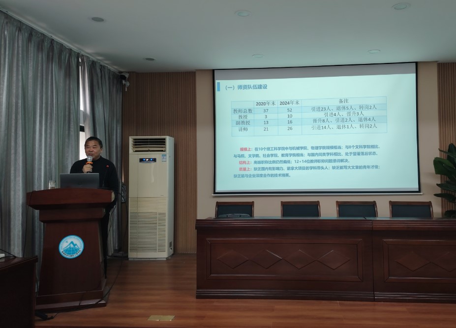 院长杜景龙做了“新形势下地测学院发展思考” 的报告。他从师资队伍建设、本科教学、科学研究、学科建设与研究生培养等方面,系统梳理了学院近几年取得的成绩和存在的问题。杜院长指出,学院在师资队伍建设上取得了一定进展,但仍需加大高层次人才引进力度;在本科教学方面,专业建设、竞赛成果等都有稳步提升,但还缺乏高显示度的教学成果,需进一步加强。针对当前形势和挑战,杜院长围绕学校定位、专业调整、博士点建设等方面进行了深入分析。他强调,学院要紧密结合学校发展定位,优化专业结构,加强学科交叉融合,提升学院的核心竞争力。同时,要以学校博士点建设为契机,为学院长远发展奠定坚实基础。从学院、专业和教师个人层面,杜院长提出了具体的应对方法和策略,鼓励教师们积极参与教学改革和伟德国际,提升自身综合素质。