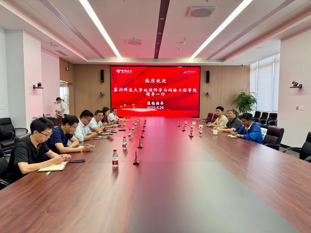 彭科围绕学院学科专业发展历史,系统阐释了测绘工程、地理信息科学、人文地理与城乡规划等专业特色和核心优势。他着重指出,学院始终以培养适应行业发展需求的专业人才为目标,期待与苏州低空科技有限公司携手,通过深化校企合作,搭建起更广阔的教学实践与就业平台,共同探索行业发展新路径,助力推动相关领域的创新与进步。杨朝辉进一步强调,学院将产教融合作为人才培养质量提升的重要抓手,深度聚焦学生就业创业能力的锻造,通过构建校企协同育人模式,着力培养兼具扎实理论基础与卓越实践能力的高素质应用型人才,为行业发展持续输送优质人力资源。郑军详细介绍了公司在业务拓展、技术研发等方面取得的阶段性成果,他表示,随着低空经济产业的快速发展,行业对具备地理信息与空间智能技术背景的高素质人才需求迫切,期待与学院建立长期稳定的战略合作关系,共同推进技术创新和产业升级。