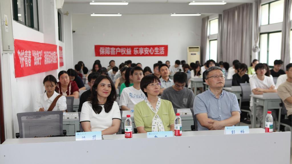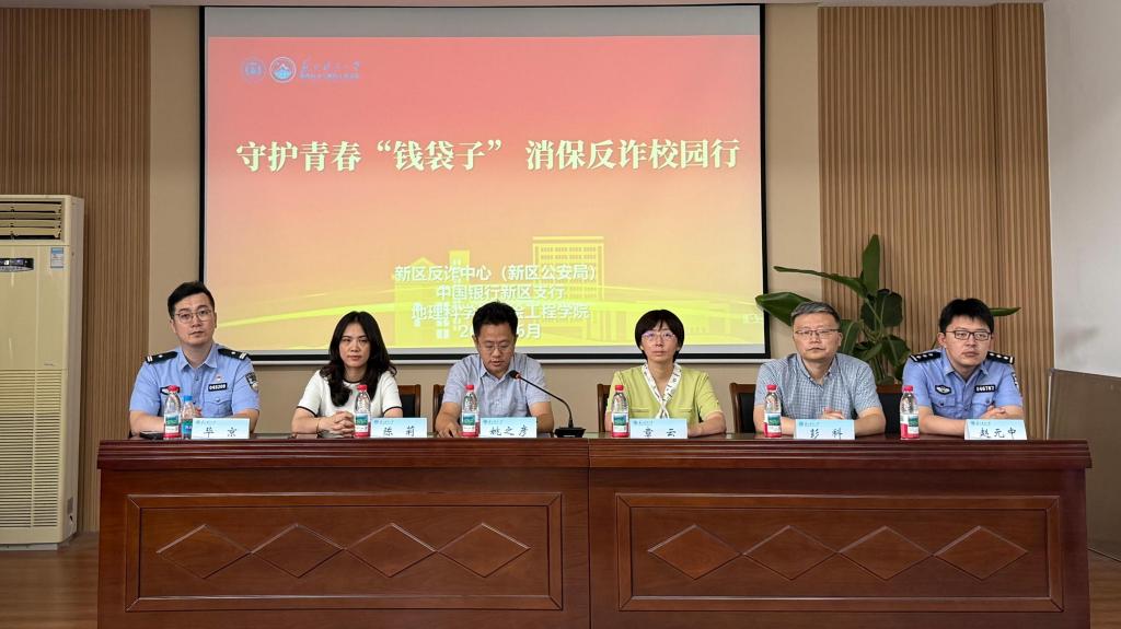 为进一步筑牢校园安全防线,提升学生防范电信网络诈骗能力,6月13日,伟德victor1946联合新区反诈中心(新区公安局)、中国银行新区支行开展“守护青春‘钱袋子’消保反诈校园行”活动。反诈专家毕京、横塘派出所赵元中、中国银行新区支行副行长章云、陈莉,伟德victor1946党委书记姚之彦、党委副书记兼副院长彭科及师生代表参与活动。本次活动由地测学院学工办主任钱蜜主持。