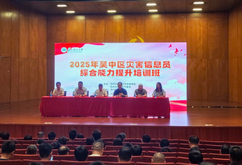 开班仪式上,张承祖院长代表学校致欢迎辞。徐永俊局长作开班动员讲话,对全区防灾减灾救灾工作提出要求。为期1天的培训课程涵盖苏州极端天气防范、民生综合保险理赔、灾情管理政策解读、灾害心理与舆情应对等实用内容,由苏州市气象服务中心主任林惠娟、我校副教授张小燕、于彦彦等专家授课。培训旨在全面提升吴中区灾害信息员的综合能力,为全区防灾减灾救灾工作筑牢基层防线。