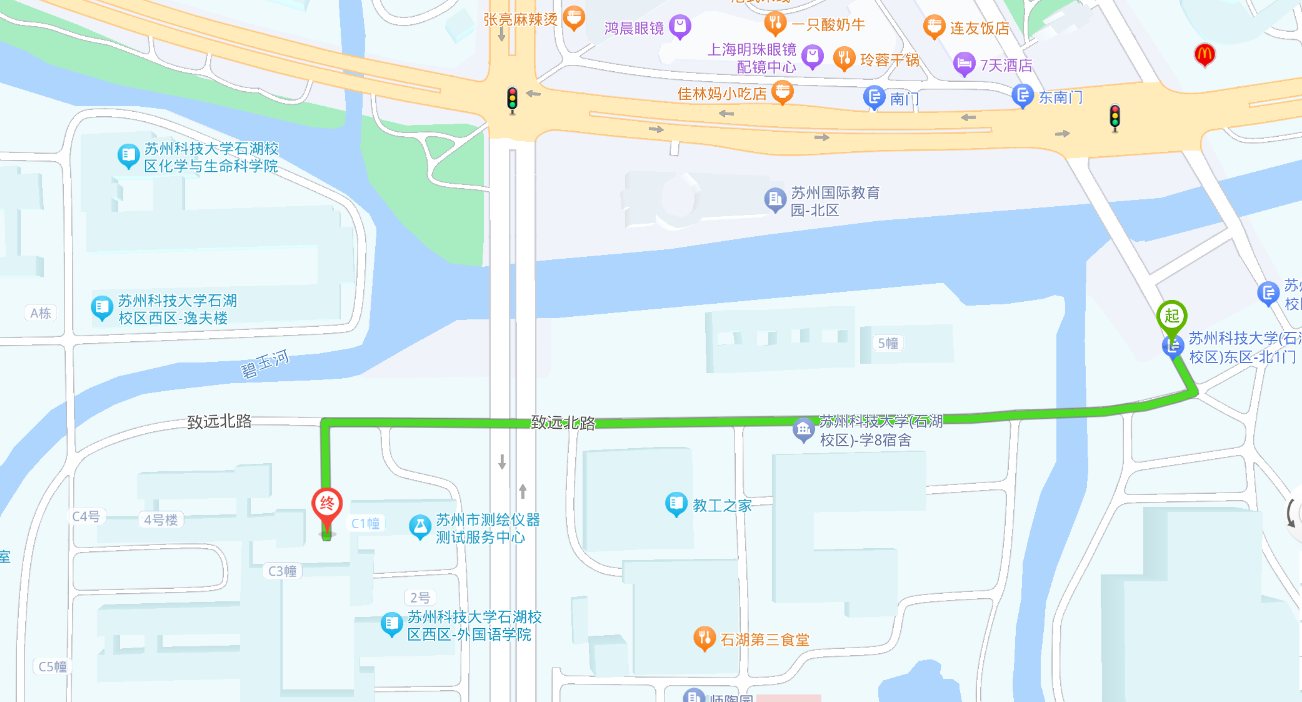 从沪宁高速苏州新区出入口进入苏州。进入市内后,可根据百度地图导航指示,直接到达石湖校区。