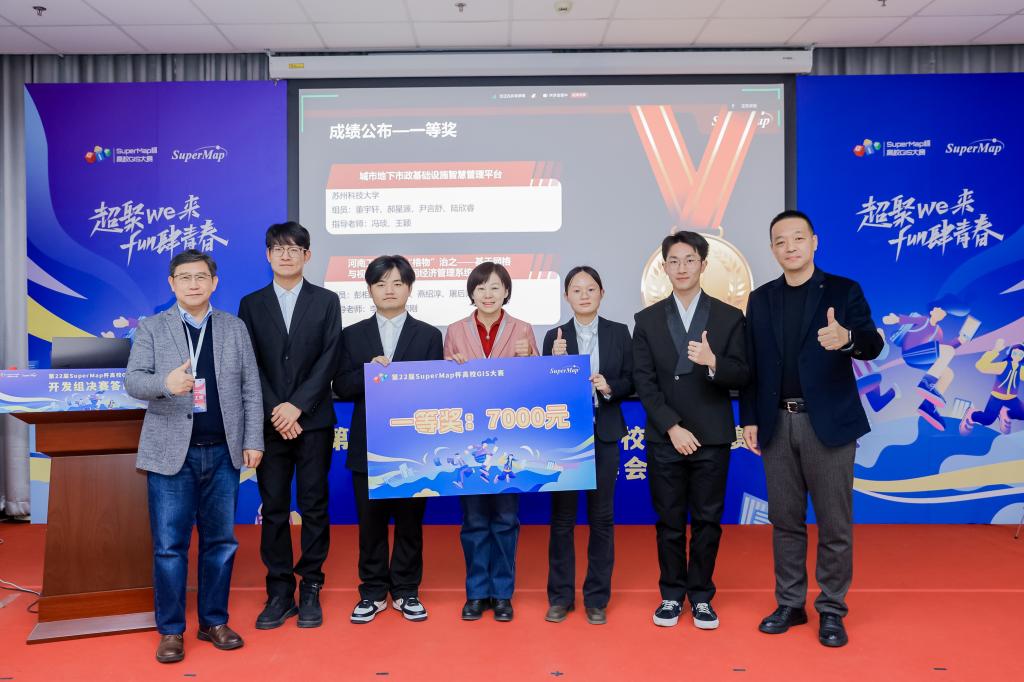 近日,第22届SuperMap杯全国高校GIS大赛开发组决赛在北京举办。伟德victor1946的学生董宇轩、尹言舒、郝星源、陆欣睿完成的作品《守护城市地下“生命线”——城市地下市政基础设施智慧管理平台》(指导教师:冯琰、王颖)荣获全国一等奖。